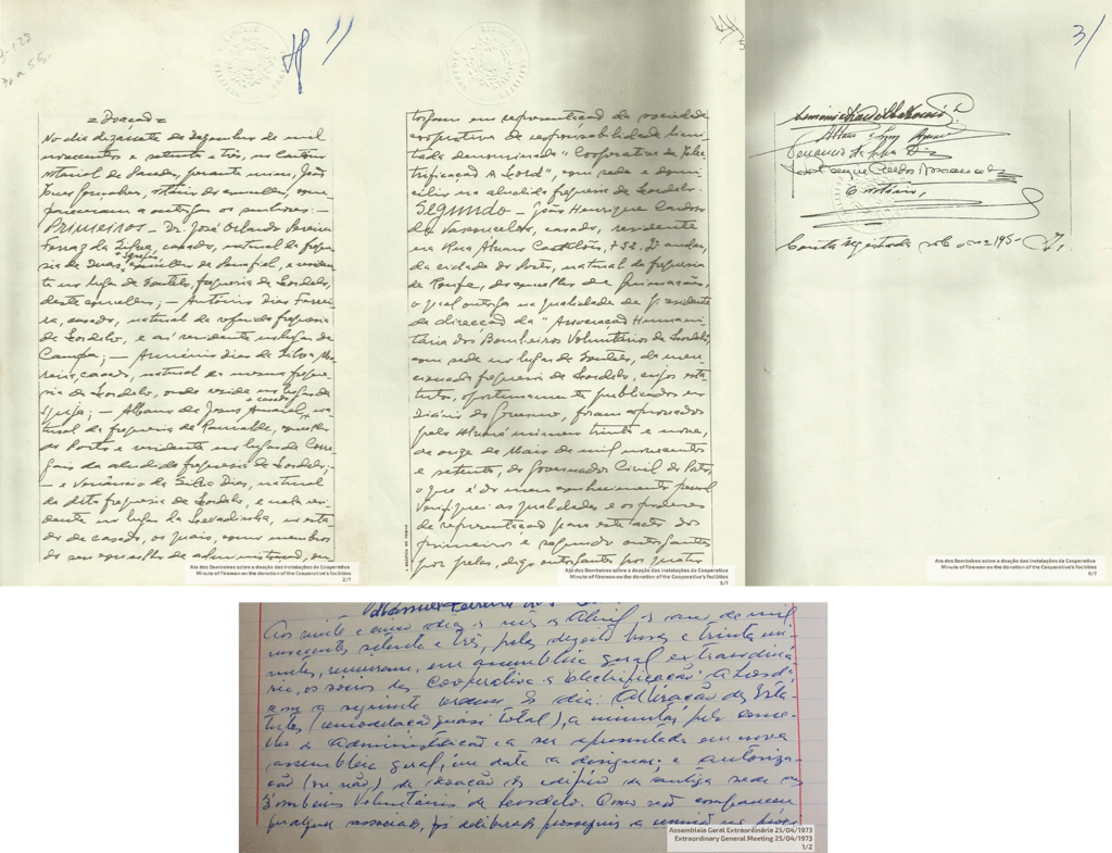 Abaixo a ata de doação do edifício do primeiro quartel dos B.V.Lordelo pela Cooperativa A Lord em 1973.