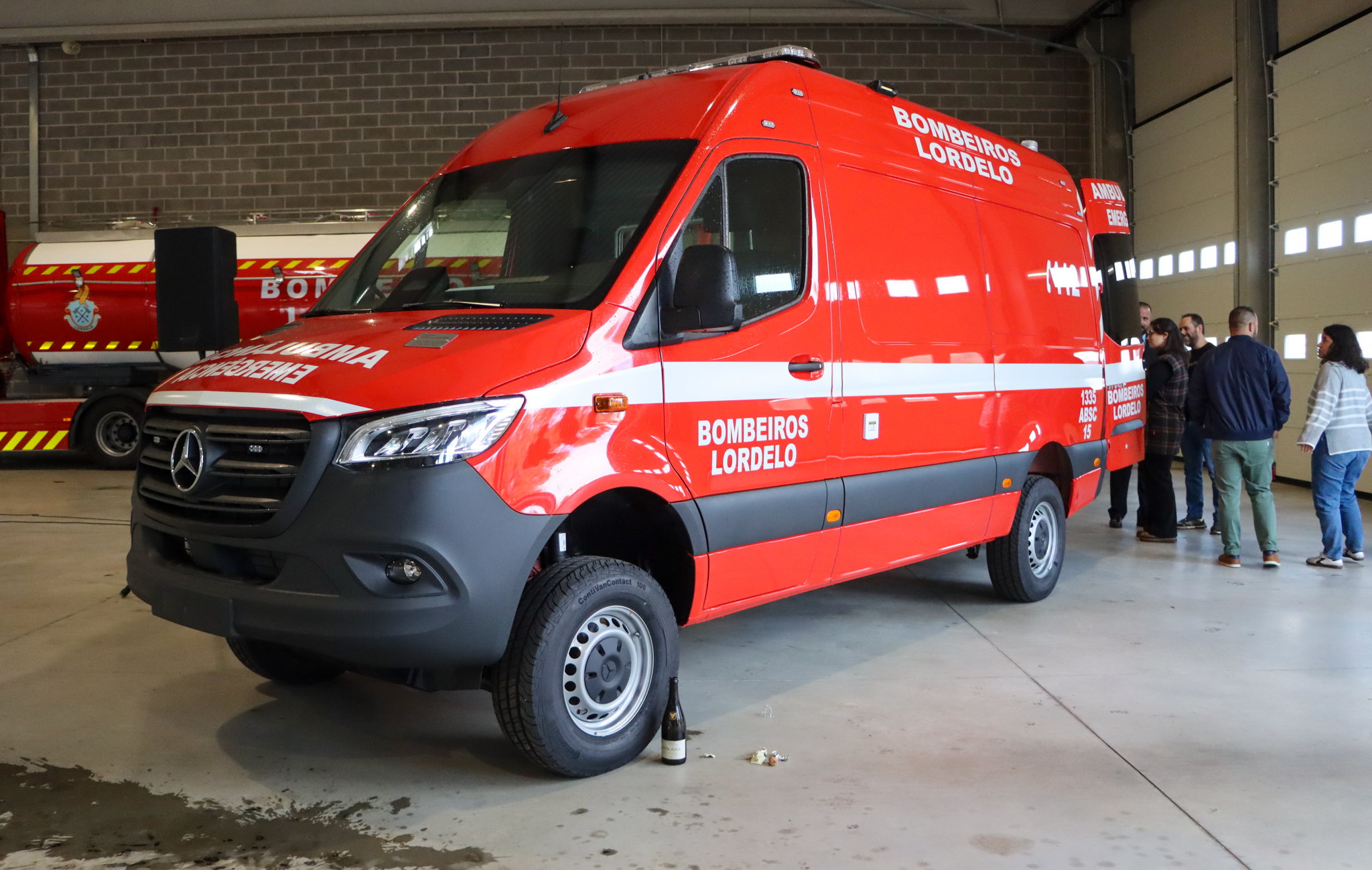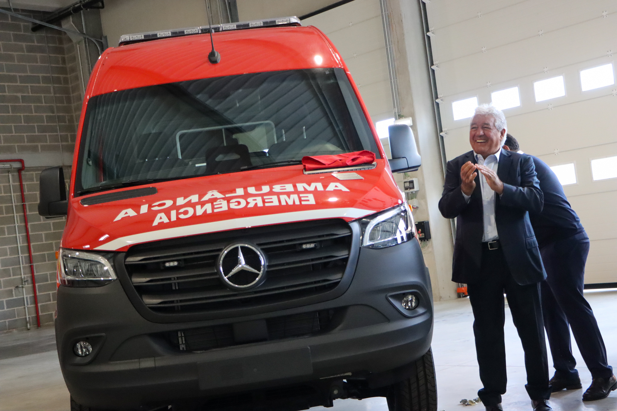 Cerimónia da benção da nova viatura, uma ambulância de socorro oferecida pela empresa Fibromade SA (Domingos Barros, João Barros e Sara Barros).