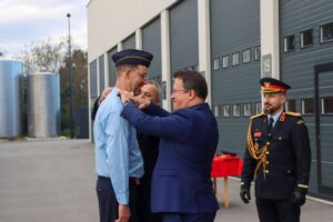 No final da cerimónia, seguiu-se o batismo simbólico do novo Comandante. Foi um momento carregado de emoção e profundo significado, onde tradição, honra e sentimento se encontraram. Cada gesto representou a confiança, o respeito e a esperança depositados naquele que assume a nobre missão de liderar, servir e proteger. Foi um instante que marcou não apenas uma mudança de comando, mas o nascimento de um novo ciclo, guiado por coragem, dedicação e amor à causa.
